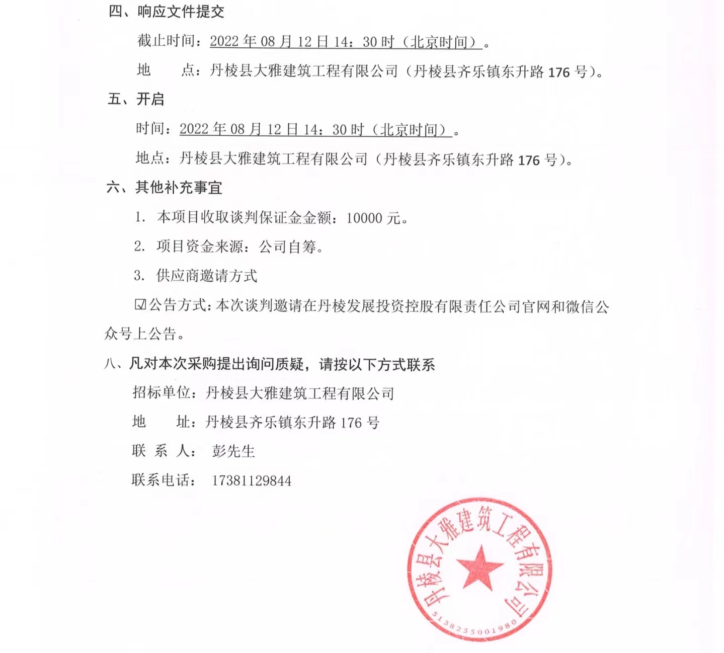丹棱縣食品園區(qū)建設(shè)項(xiàng)目(一期)--丹棱凍粑產(chǎn)業(yè)園建設(shè)項(xiàng)目設(shè)計(jì)、施工、采購總承包(EPC)消防工程專業(yè)分包項(xiàng)目競爭性談判公告