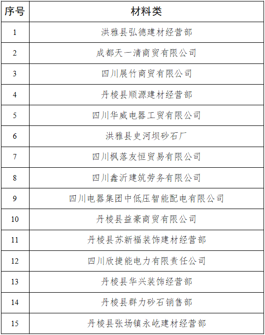 附件:丹棱發(fā)展投資控股有限責任公司第二批入庫供應商名單
