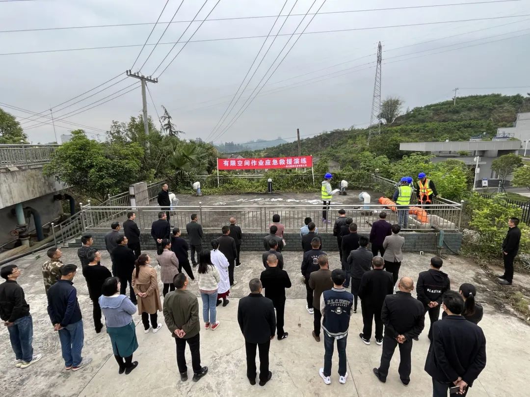 為有效防范有限空間作業(yè)安全生產(chǎn)事故,提高員工的應急能力,4月24日上午,四川順源水務有限公司組織全體員工在丹棱縣仁美水廠開展了有限空間作業(yè)應急救援演練,縣國資金融局領導現(xiàn)場指導演練工作。