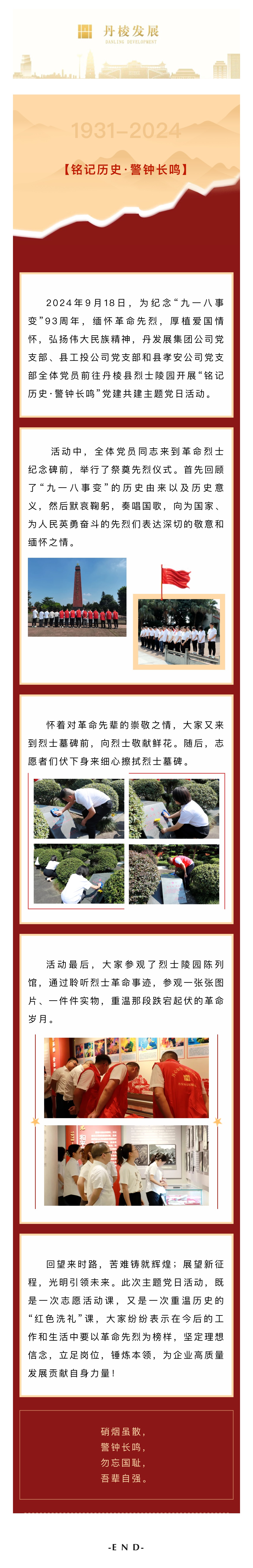 結對共建,共育共進|丹發(fā)展集團公司黨支部開展開展“銘記歷史·警鐘長鳴”黨建共建主題黨日活動